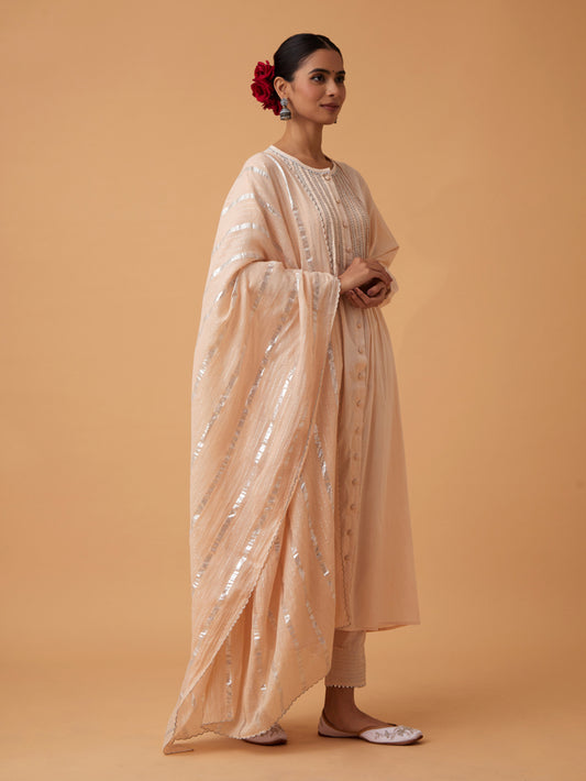Off White Cotton Kurta with Pants and Dupatta Set of 3