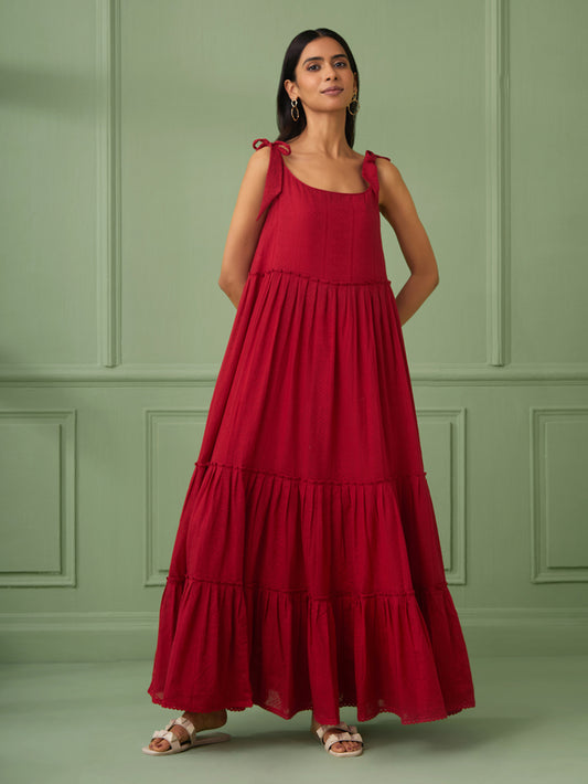 Old Rose Breezy Tiered Cotton Maxi Dress