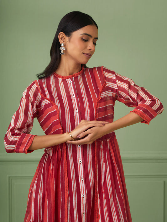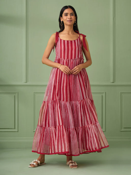 Red Stripe Breezy Tiered Cotton Maxi Dress