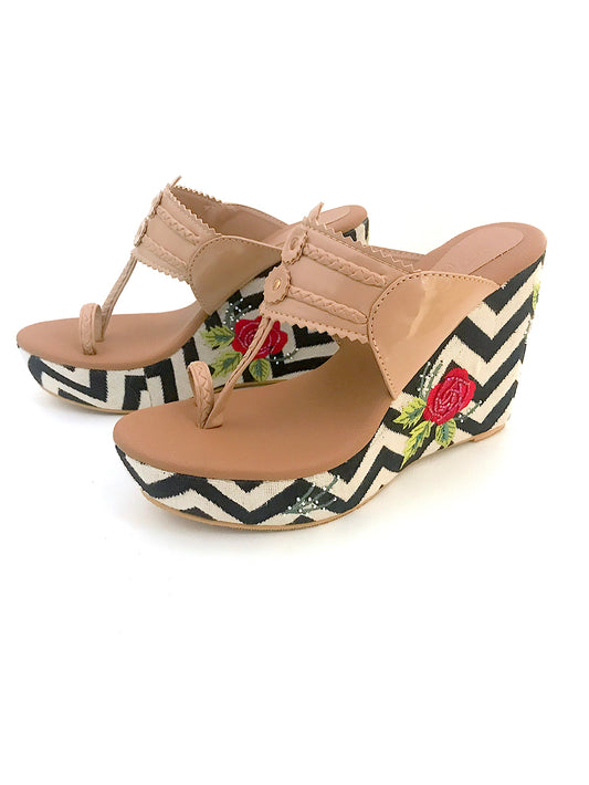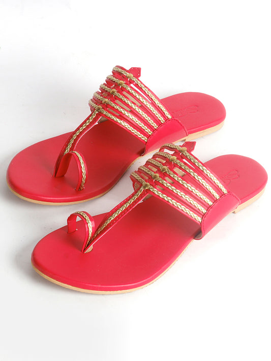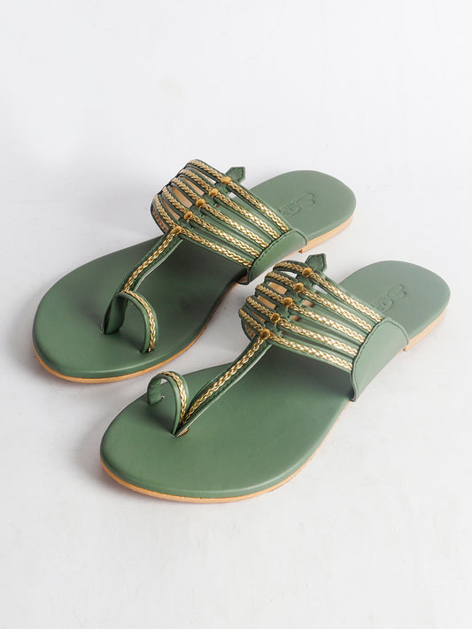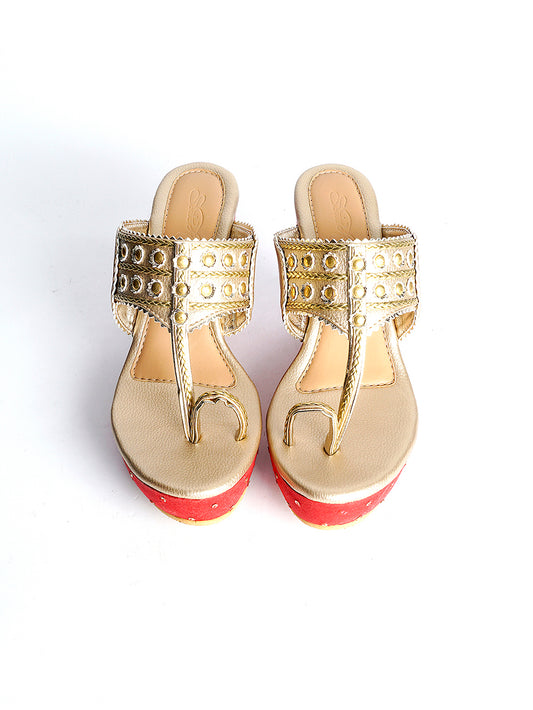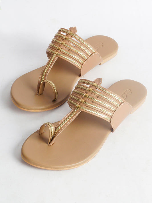 Nude Kolapuri With Gold Braiding and Gold Rivet Leather Flats