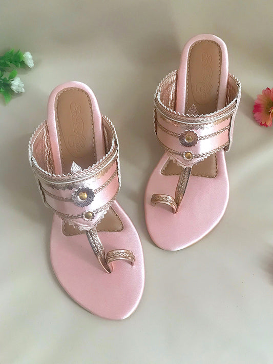 Golden Vegan Leather Filigree Kolapuri Wedges