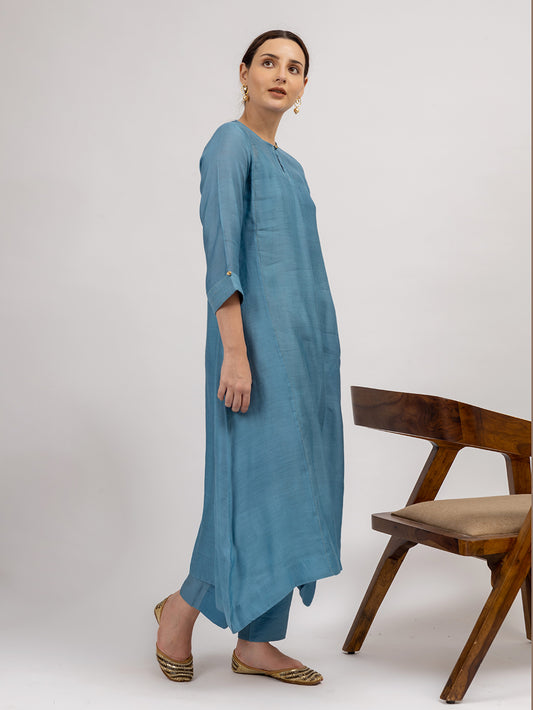 Teal Blue Maheshwari Silk Kurta