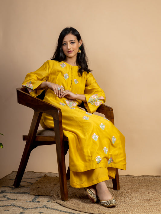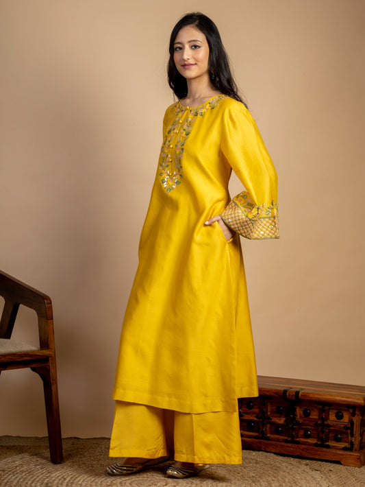 Yellow Embroidered Chanderi Kurta