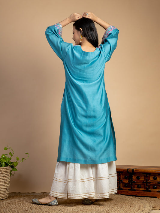 Turquoise Embroidered Chanderi Kurta