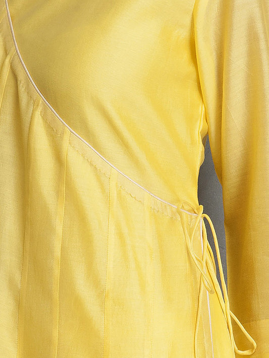 Yellow Chanderi Angrakha Kurta