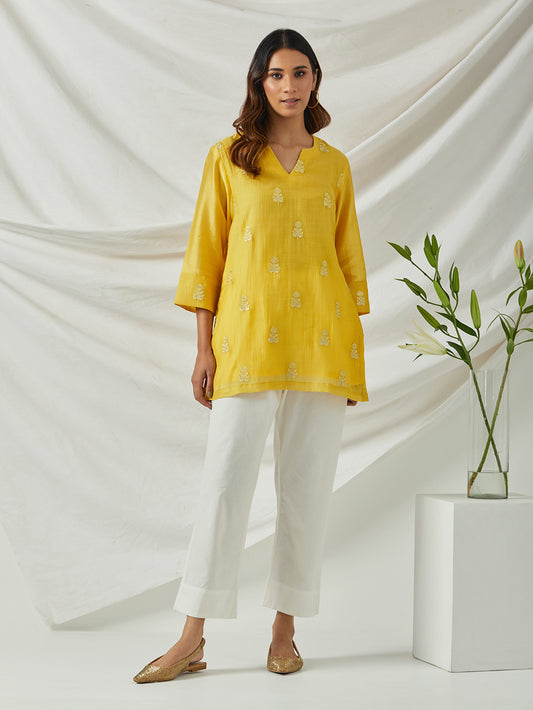 yellow embroidered chanderi tunic