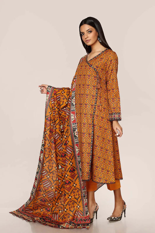 Mustard Yellow Printed Cotton Suit - Set of 3