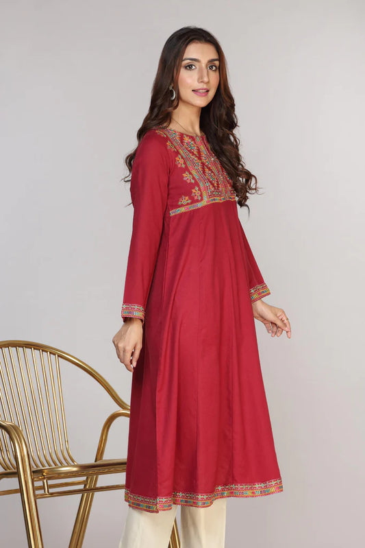 Maroon Embroidered Cotton Suit - Set of 2