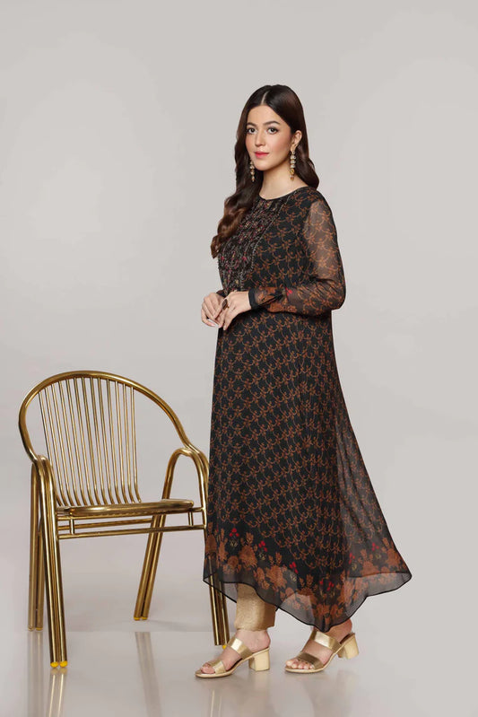 Black Printed Cotton Kurta with Pants - Set of 2
