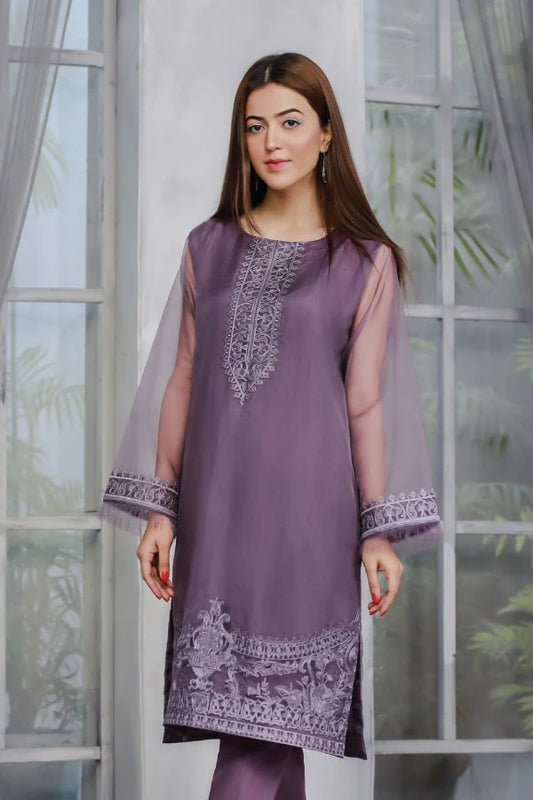 Purple Embroidered Chanderi Cotton Suit - Set of 2