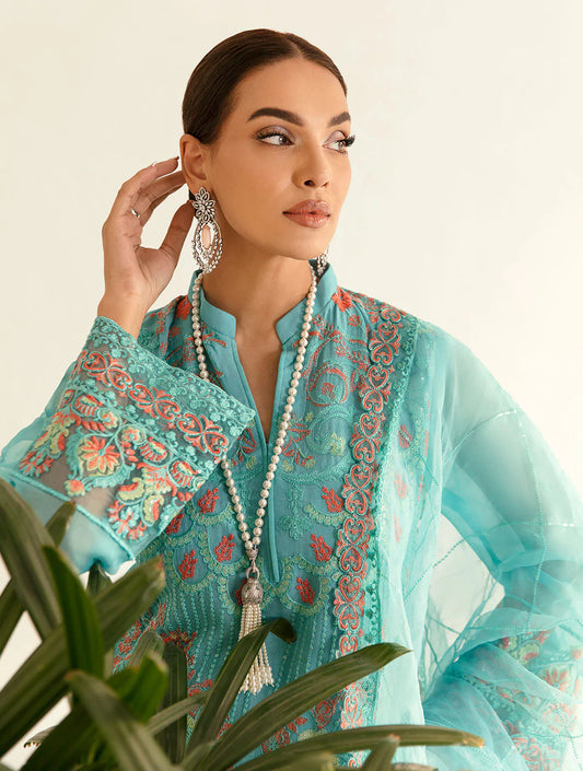 Blue Embroidered Cotton Suit - Set of 3