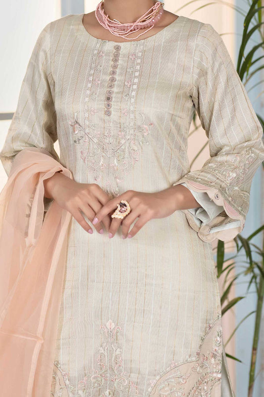 Ivory Embroidered Chanderi Cotton Suit - Set of 3