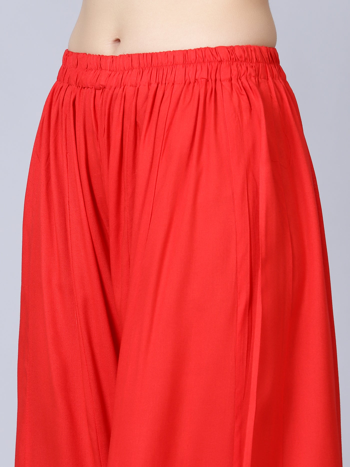 Black Cotton Printed Kurta with Red Sharara and Dupatta - Set of 3