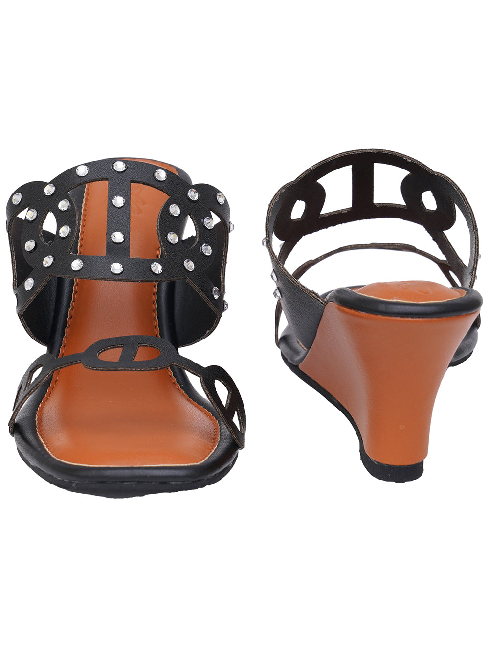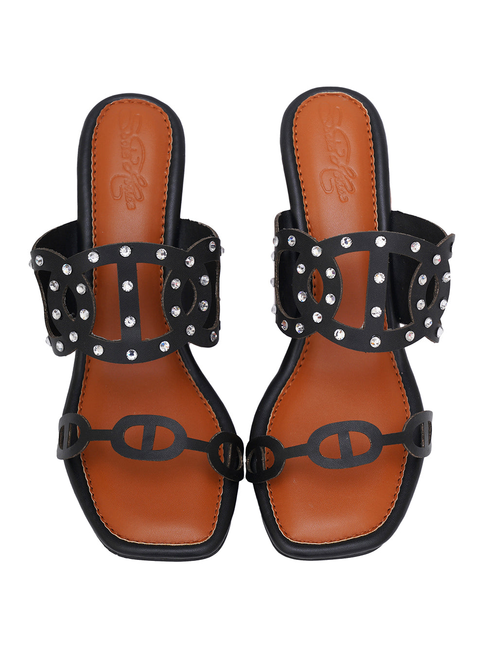 Description : Monochrome Dutch heel with Swarovski Stones in Black and Tan . 2.5 Inch Heel