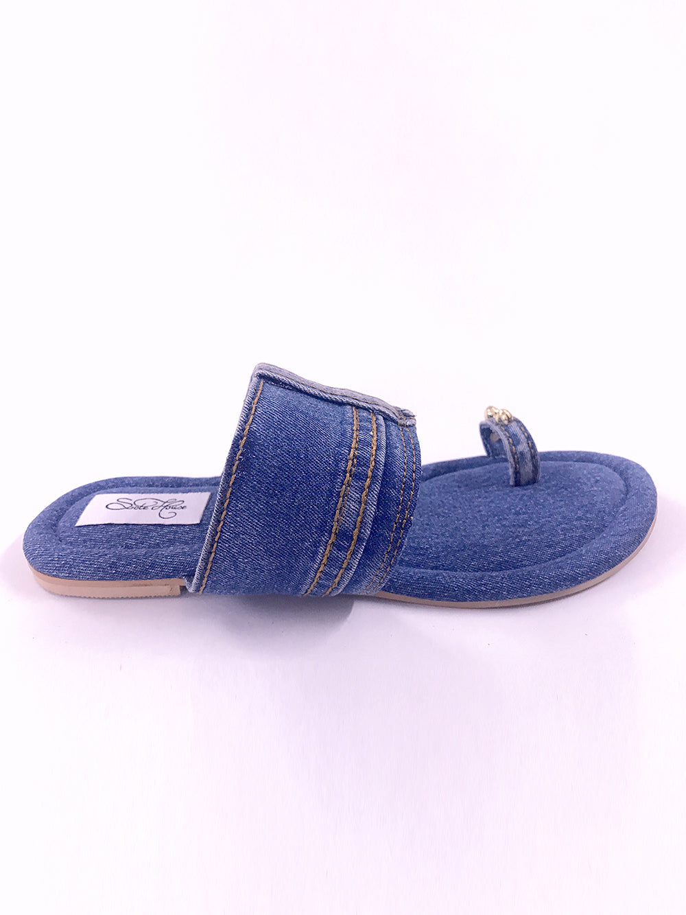 Description : Recycled Denim Kolapuri flats with Gold Rivet