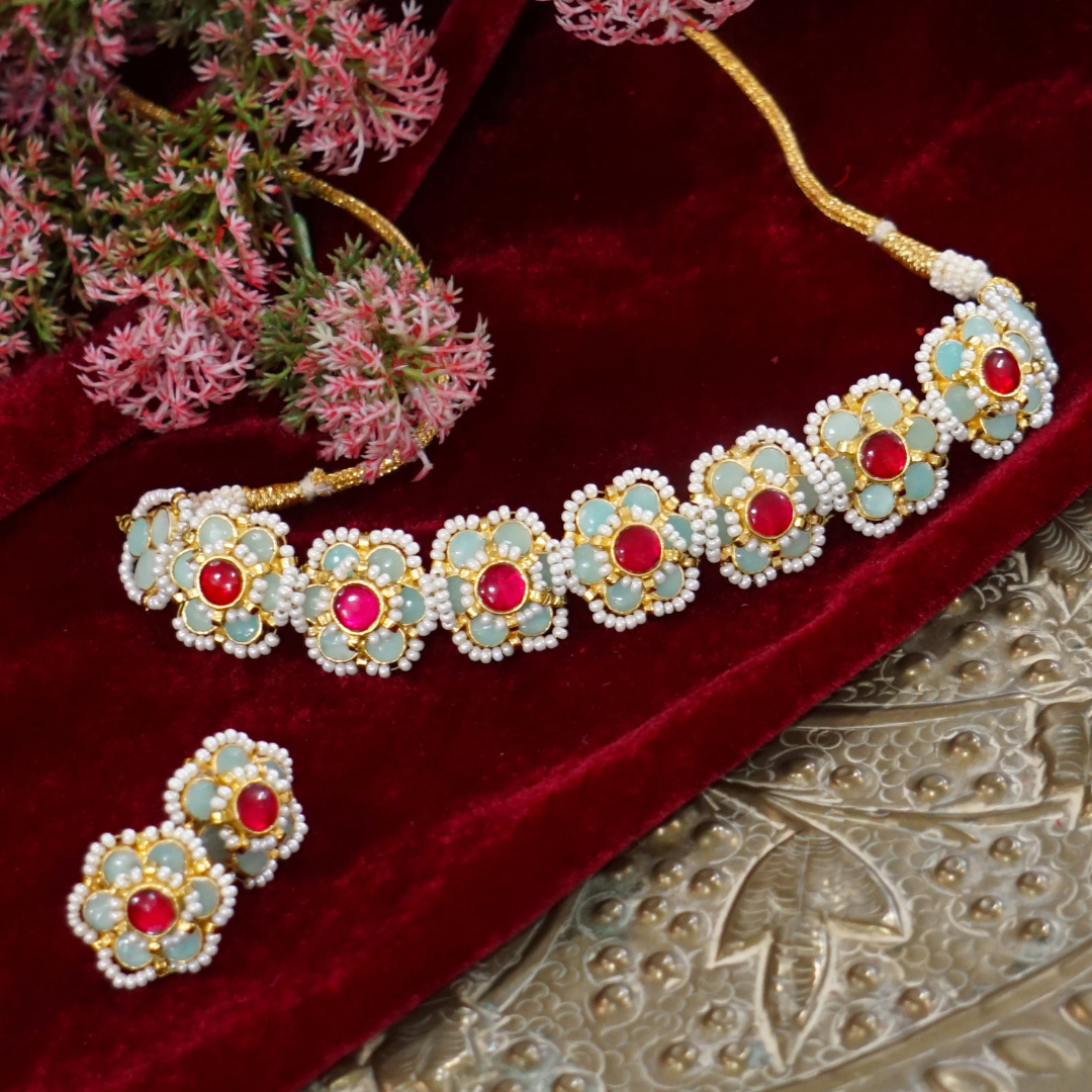 Mint Green Handcrafted Brass Chokar Set