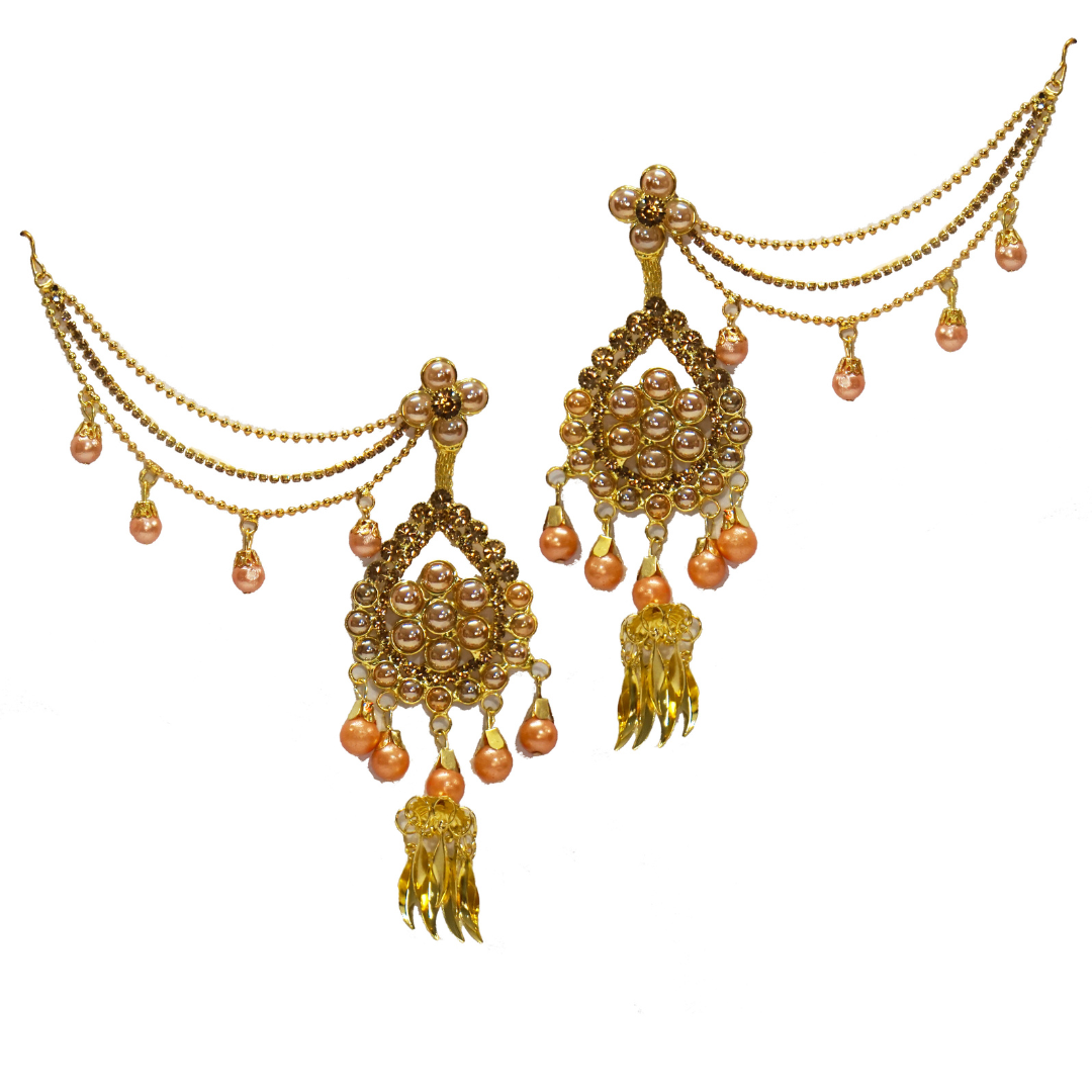 Description : It is a beautiful handcrafted brass earrings with hair chain.