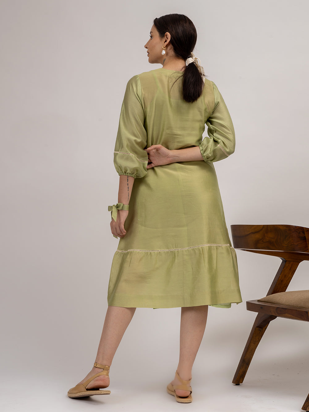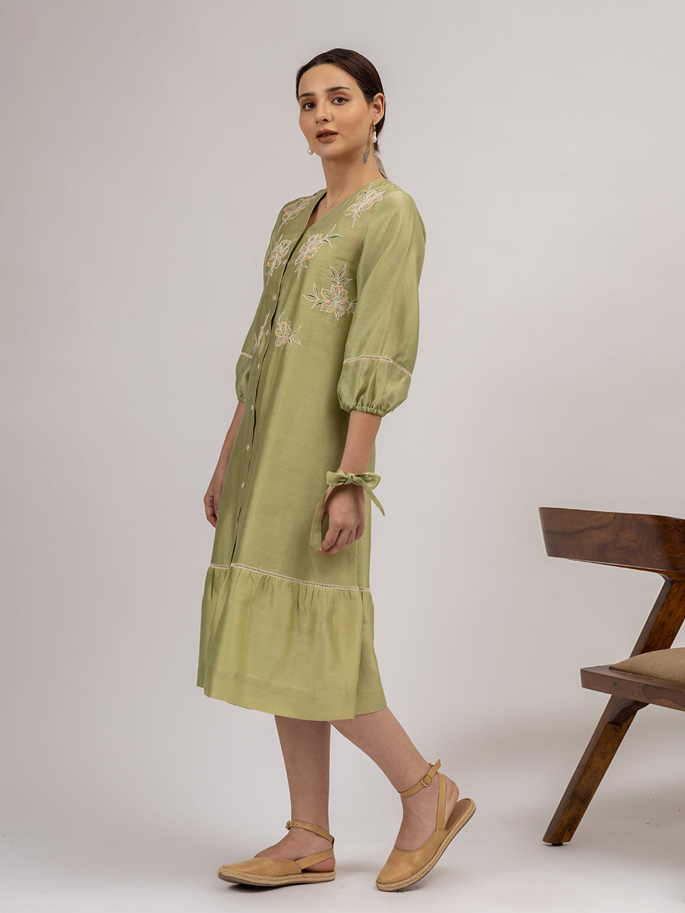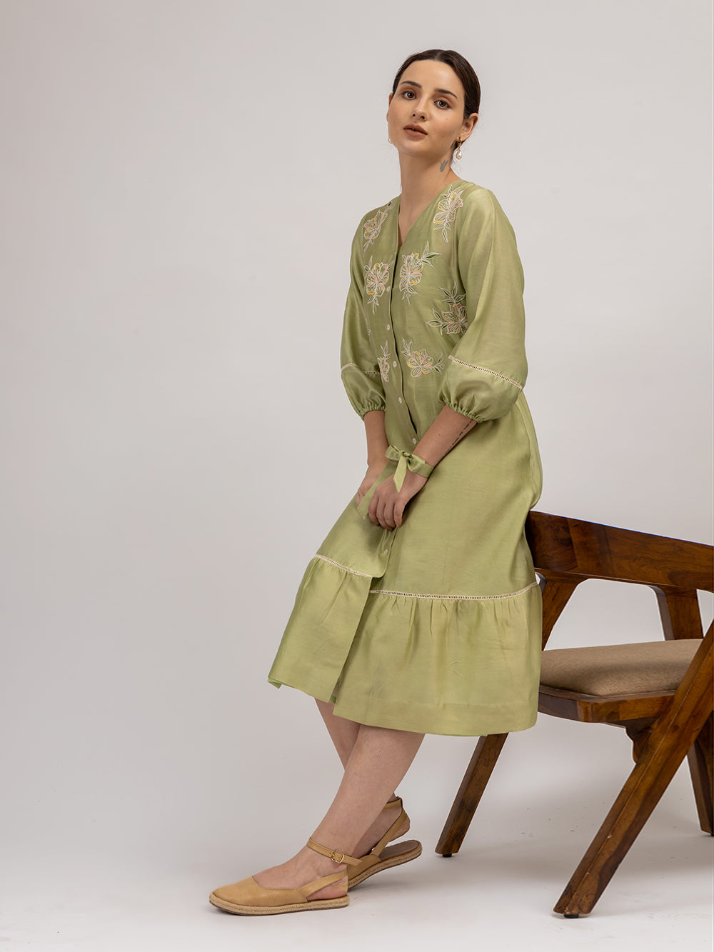 Green Embroidered Chanderi Dress