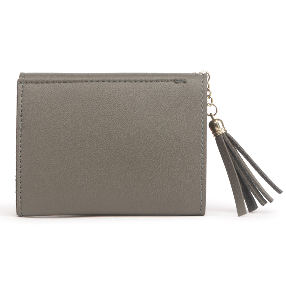 Description : Grey Solid- Tassel Tri-Fold Mini Wallet s Slim And Versatile ,That Keeps The Monitory Essentials Neatly And Securely. This Richly Textured Leatherette Exterior Of The Wallet Is Pretty And Compact That Helps To Keep Your Cash & Coins, Id Cards Etc.