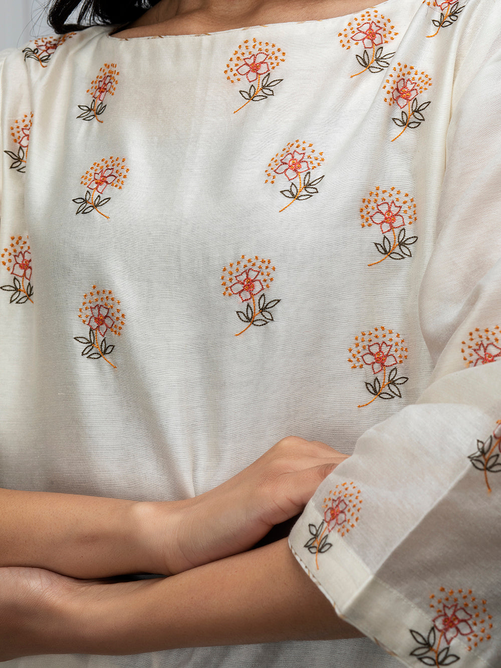 Off White chanderi kurta with pants and Dupatta Set of 3