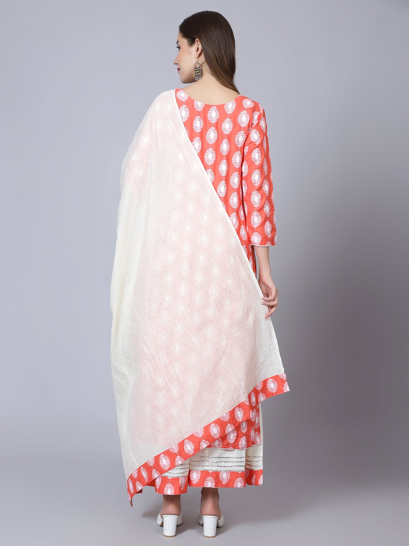 Orange Cotton Printed Suit - Set of 3